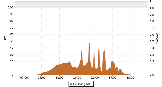 Energie = 76.793,85 kWh (774,13 kWh/kWp) | CO2-Vermeidung = 46.076,31 kg
