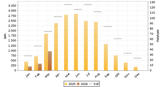 Energie = 1.504,30 kWh (57,12 kWh/kWp) | CO2-Vermeidung = 902,58 kg